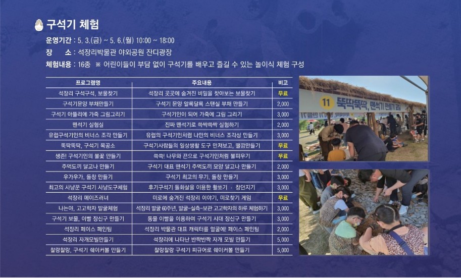 장소: 석장리박물관(금벽로 990), 상왕동 일원(상왕동 27-5)