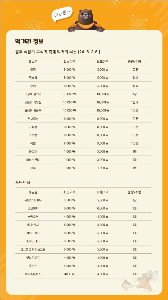 먹거리 부스 안내
