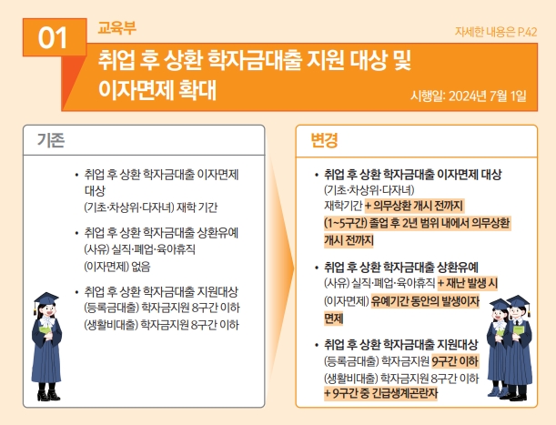 취업 후 상환 학자금 대출 지원대상, 이자면제 확대